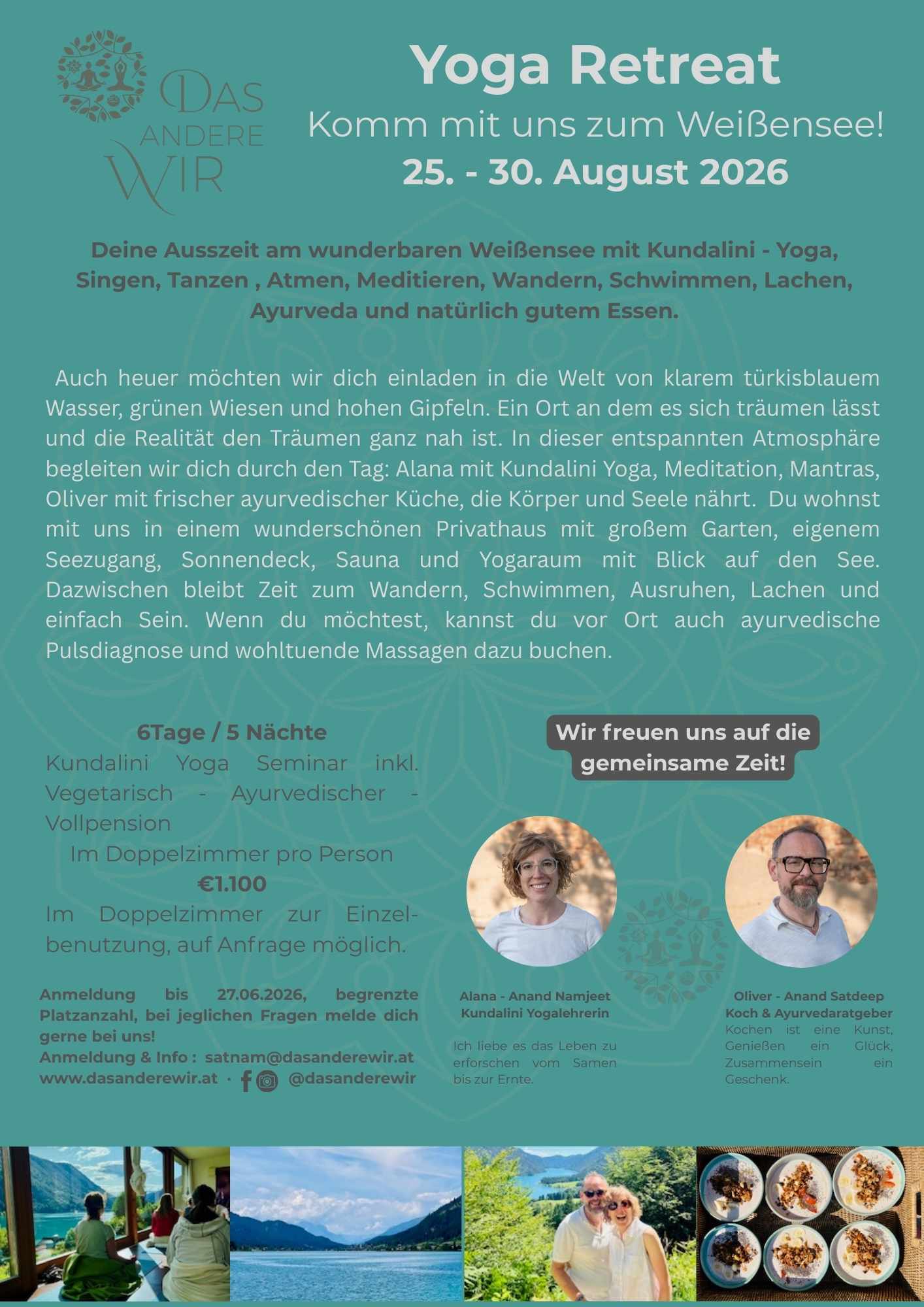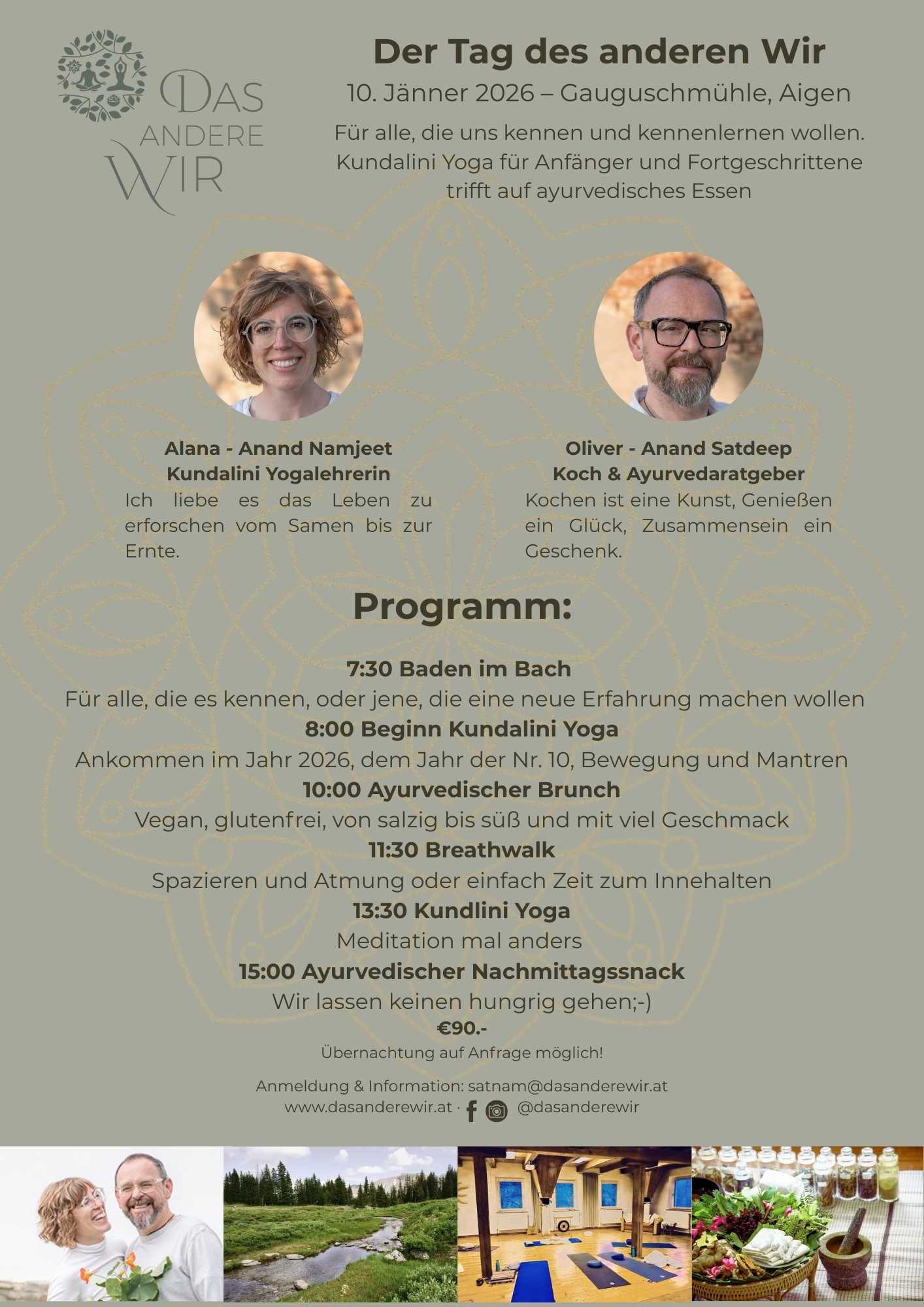 Lass dich inspirieren von unseren vergangenen Retreats. Ob am Weissensee oder in der Gauguschmühle, jedes Retreat ist einzigartig und bietet dir die Möglichkeit, tief in die Welt von Yoga, Meditation und Ayurveda einzutauchen.